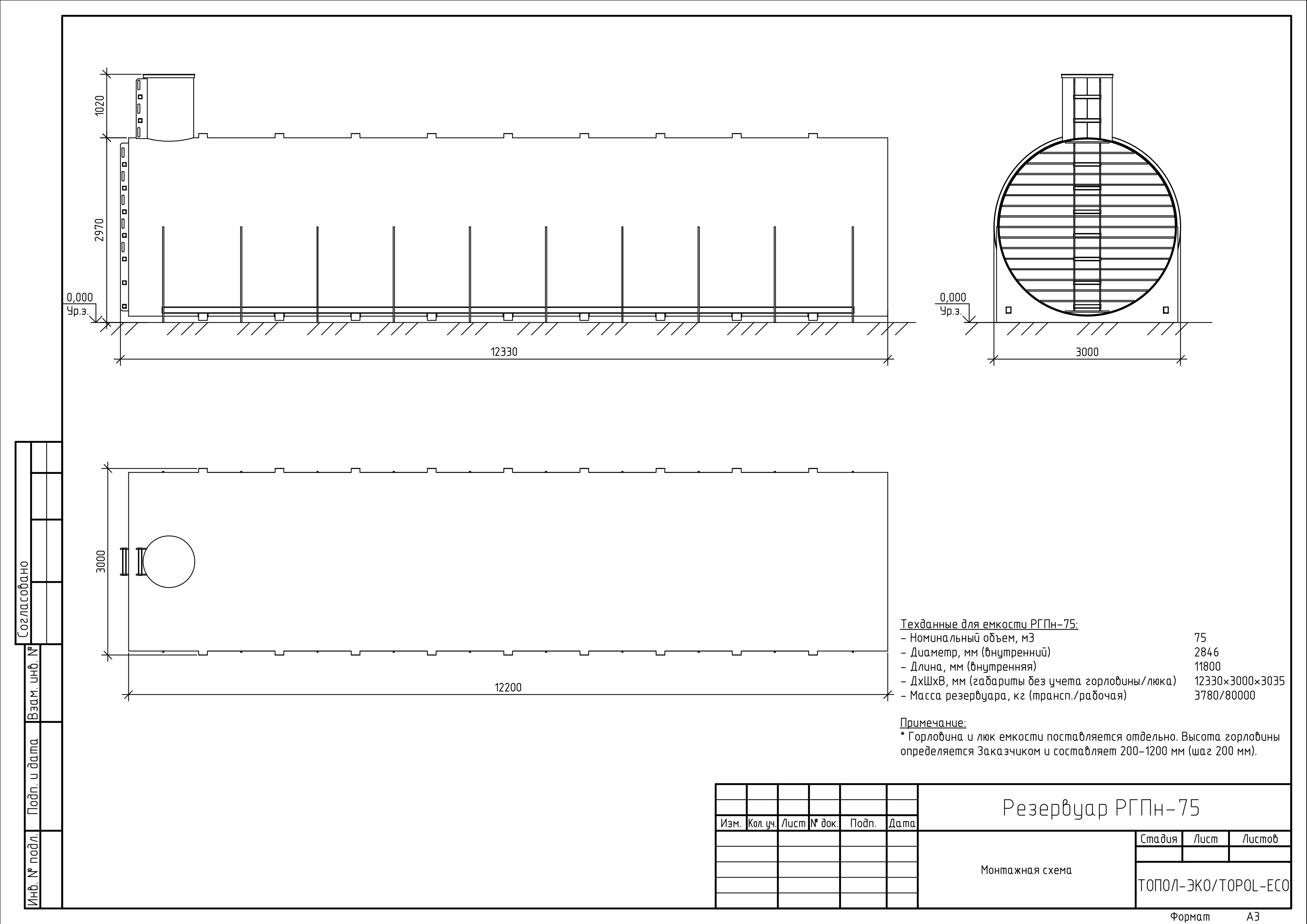 Резервуар РГПн-75 (12330*3000*3035)
